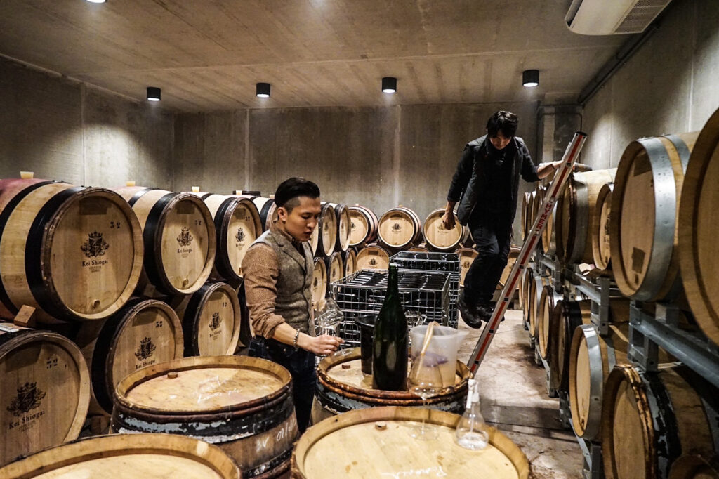 「Kei Shiogai」のカーヴにてテイスティング
