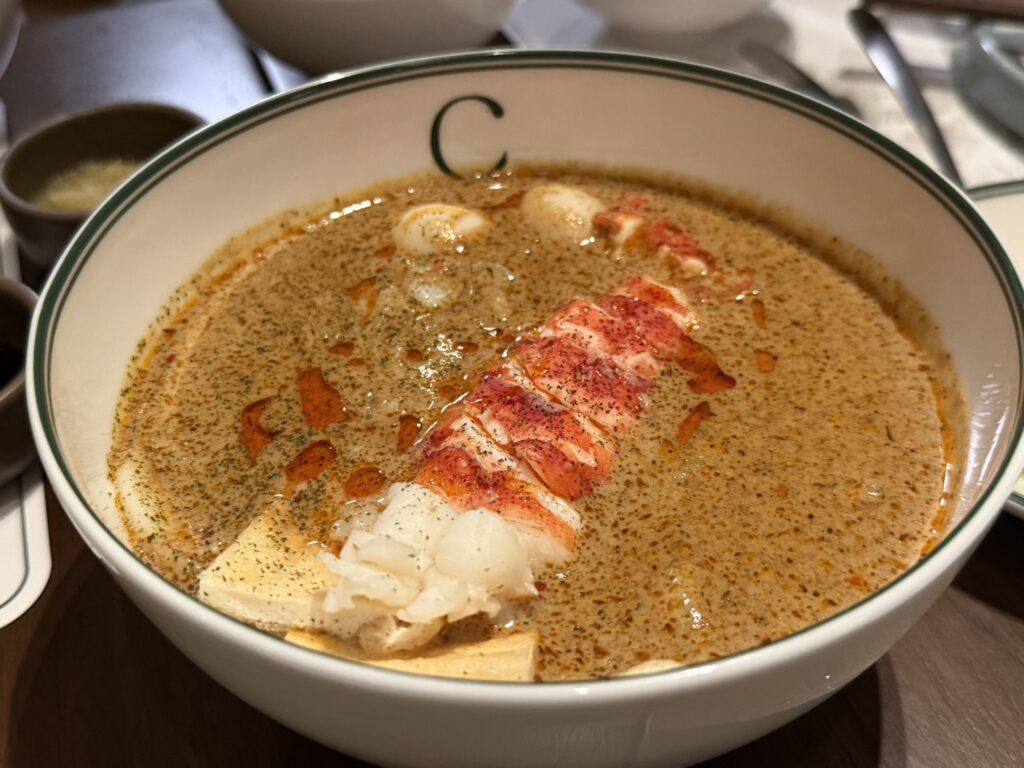 最後は、「ロブスターラクサ」。ココナッツスープをベースにしたシンガポールのヌードル料理。濃厚なロブスターの風味が広がり、甘みと香ばしさがぎゅっと凝縮されています。